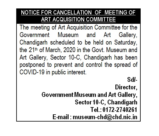 Cancellation of Art Acquisition Committee Meeting to be held on 21.03.2020". Know More